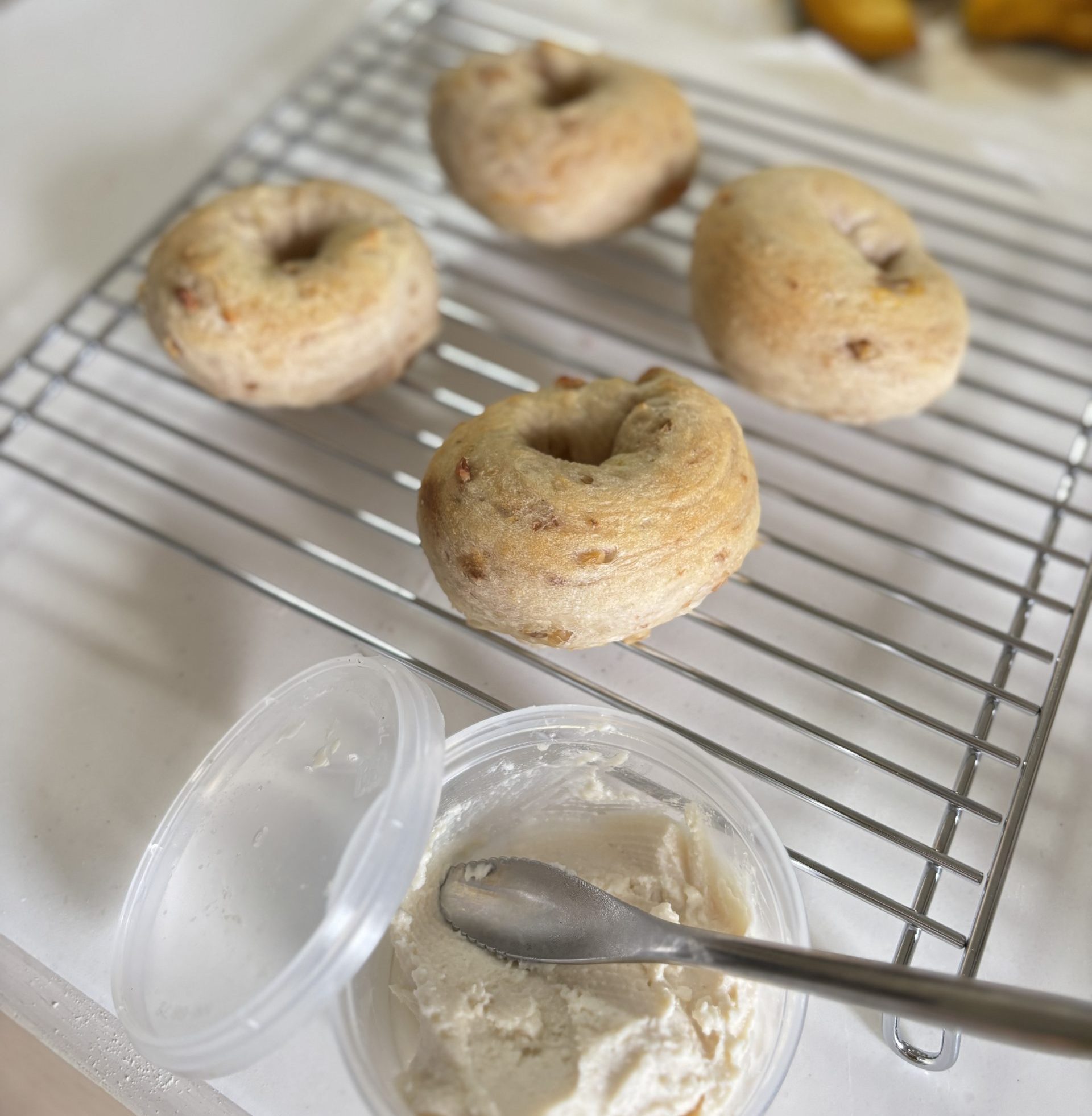 糀を使った天然酵母「さかだね」の【甘酒ベーグル】もっちり食感がご家族にも大好評です。