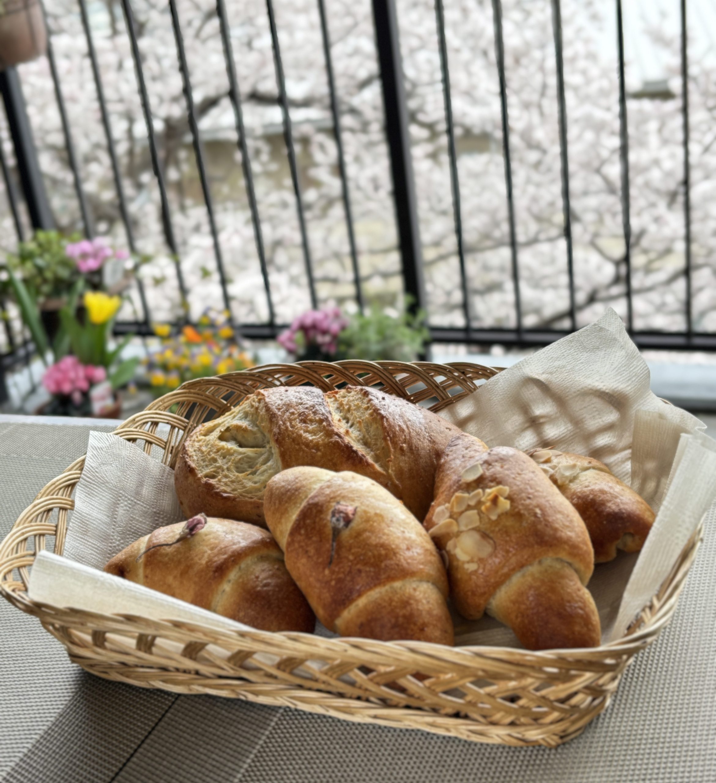 目の前の桜を楽しみながら、糀の天然酵母パン作り。